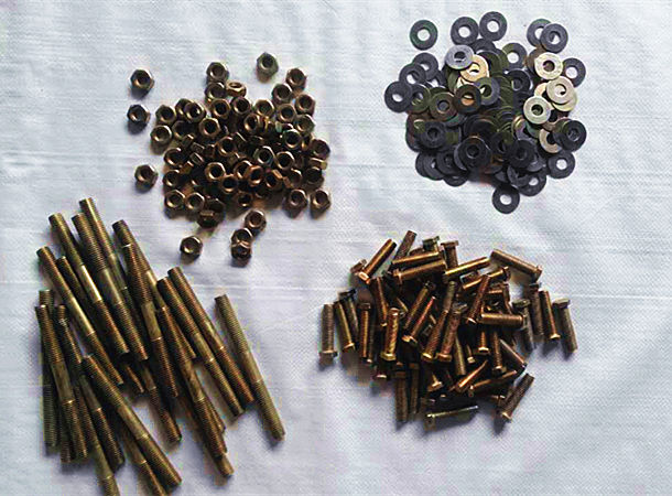 4. 堵漏安裝:螺絲帶膠塊打上玻璃膠,在水箱內部四塊板對接的小孔處,從內向外把螺絲穿出來。在外面也打玻璃膠加上膠條(膠條不得大于堵漏的小角鐵)加上角鐵,較后把螺絲擰緊即可。