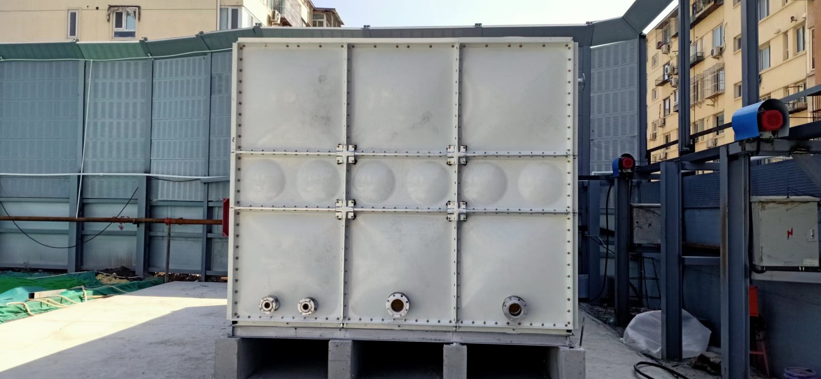 我司承接的北京市西城區(qū)半步橋街13號(hào)項(xiàng)目45立方玻璃鋼水箱已經(jīng)安裝試水完畢。SMC玻璃鋼水箱:廣泛地適用于工礦、企事業(yè)單位、住宅、賓館、飯店等建筑,作為生活飲用水、消防用水及對(duì)水質(zhì)要求較高的食品、醫(yī)藥、衛(wèi)生等儲(chǔ)水設(shè)施。 四、安裝調(diào)試 水箱基礎(chǔ)可采用混凝土條形梁,或工字鋼。水箱頂部對(duì)角設(shè)有透氣空氣過(guò)濾裝置,規(guī)格和數(shù)量根據(jù)進(jìn)口尺寸大小由生產(chǎn)廠家確定裝置。水箱內(nèi)部均使用拉筋。各管口法蘭均為1.0MPa標(biāo)準(zhǔn)法蘭。設(shè)計(jì)人員在布置水箱位置時(shí),應(yīng)參照二次供水設(shè)施衛(wèi)生規(guī)范。水箱規(guī)格技術(shù)參數(shù)或方位與實(shí)際使用不適合時(shí),由設(shè)計(jì)人員按實(shí)際需要提出確定。 水箱滿(mǎn)水實(shí)驗(yàn),24小時(shí)無(wú)滲漏現(xiàn)象;管道連接處、閥門(mén)及相關(guān)附件有無(wú)滲漏水現(xiàn)象;觀察供水系統(tǒng)運(yùn)轉(zhuǎn)情況是否正常;檢查水質(zhì)消毒系統(tǒng)是否工作正常。