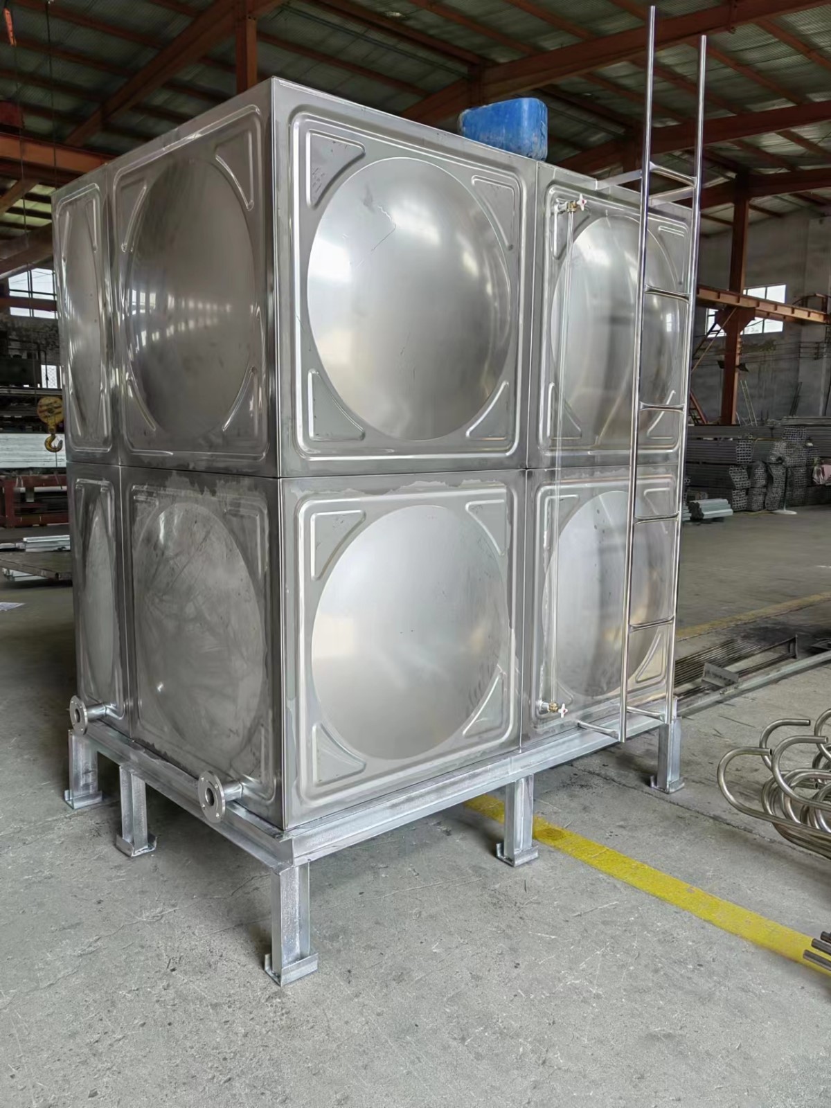我司承接的河北省吳橋縣晨宏食品有限公司不銹鋼純凈水水箱已完工,此水箱為廠內組裝完成后整體發貨。作為純凈水儲存使用(材質SUS304-2B含鎳量8.),整個系統為封閉式,SUS304不銹鋼材料外表光滑,不易附生藻類,衛生平安清洗方便水箱各項衛生指標均符合國家行業標準,通過衛生檢驗檢疫。主體常保不生銹、不長苔、不漏水,水源不受二次污染。有專門的下人孔,清洗也非常方便。