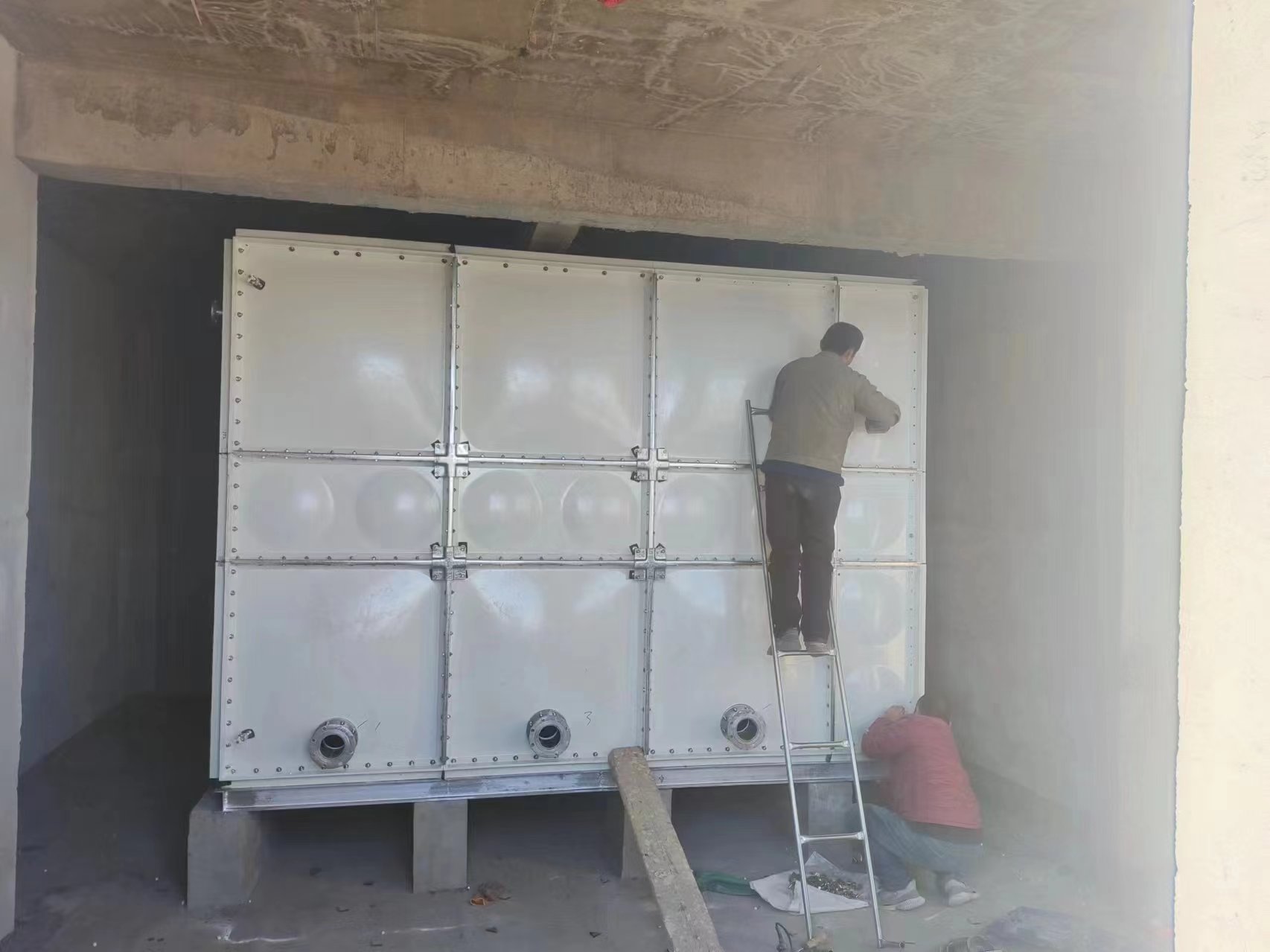 我司承接的內蒙古巴彥淖爾市瑞京名第地下室及樓頂消防水箱項目,已安裝試水完畢。SMC組合式玻璃鋼水箱是由整體優質的SMC水箱板拼裝而成。其特點是采用不飽和樹脂,因此水質好,清潔無污染;具有強度高,重量輕,耐腐蝕,外型美觀,使用壽命長,保養管理方便等特點。